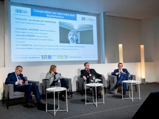 Cooperation on new risks and digitalisation This session will look at global responses to new risks to banking and resolvability, as well as explore the challenges and opportunities posed by digitalisation for the banking sector and resolvability. Moderator: Jan Reinder DE CARPENTIER, Vice-Chair, Single Resolution Board (SRB)